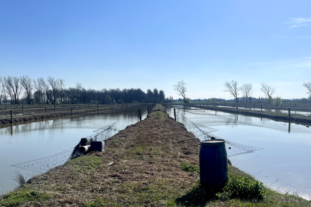 • 20 ettari di vasche in terra per l’allevamento di pesci destinati all’alimentazione, con sistemi sostenibili e rispettosi della biodiversità